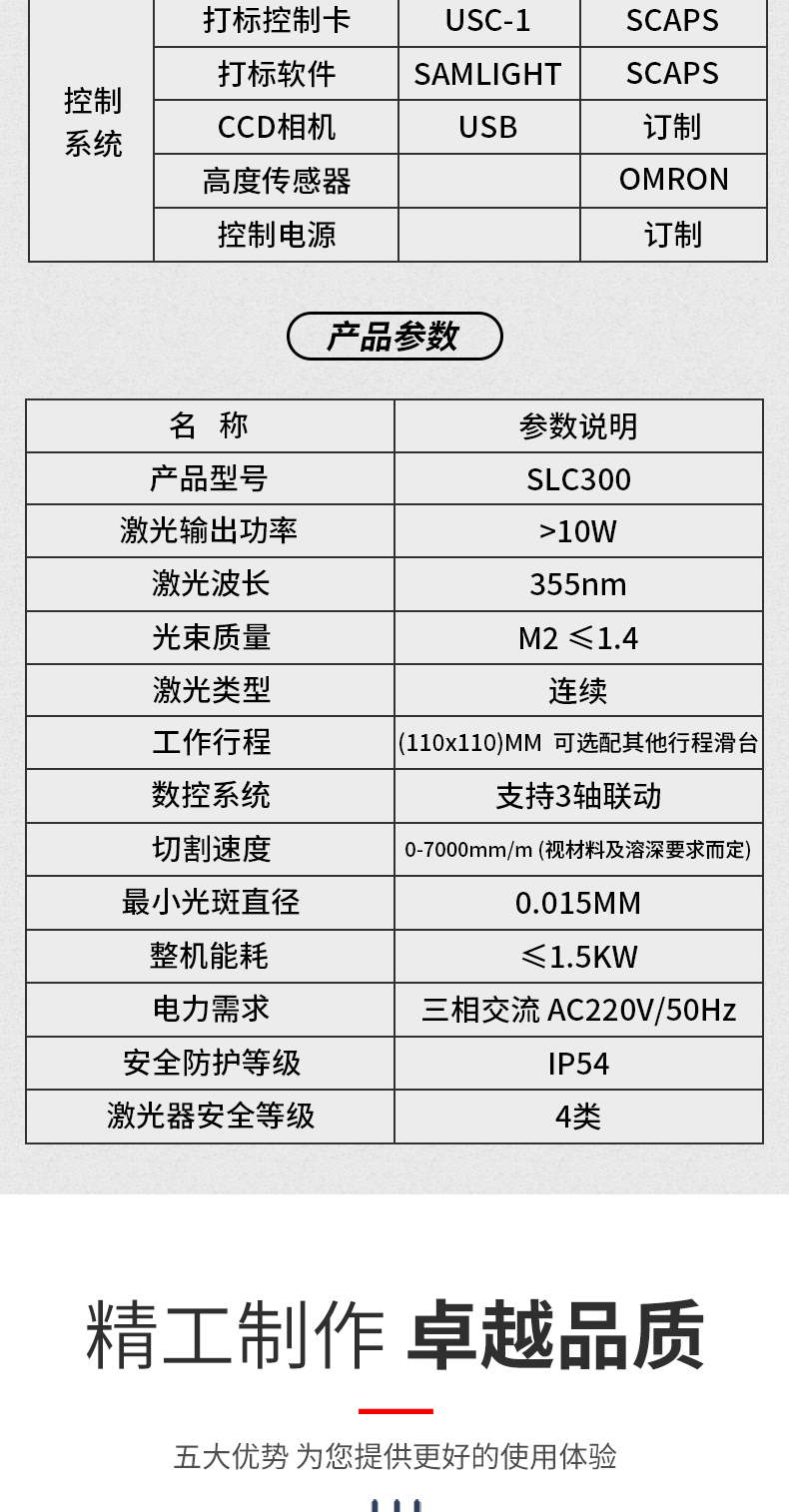 SLC300安裝方便,采用風冷UV紫外激光器,連上吸塵器,介入壓縮空氣,插上電源即可工作 。該設備設計結構緊湊,采用十字滑臺結合CCD視覺運動控制,達到高速運動并自動捕捉定位產品,效率更高,精度更高。自動調焦,是工件永遠處于激光焦點范圍內。集成真空吸附平臺,包括軟性材料柔性材料基材都能平整的固定。