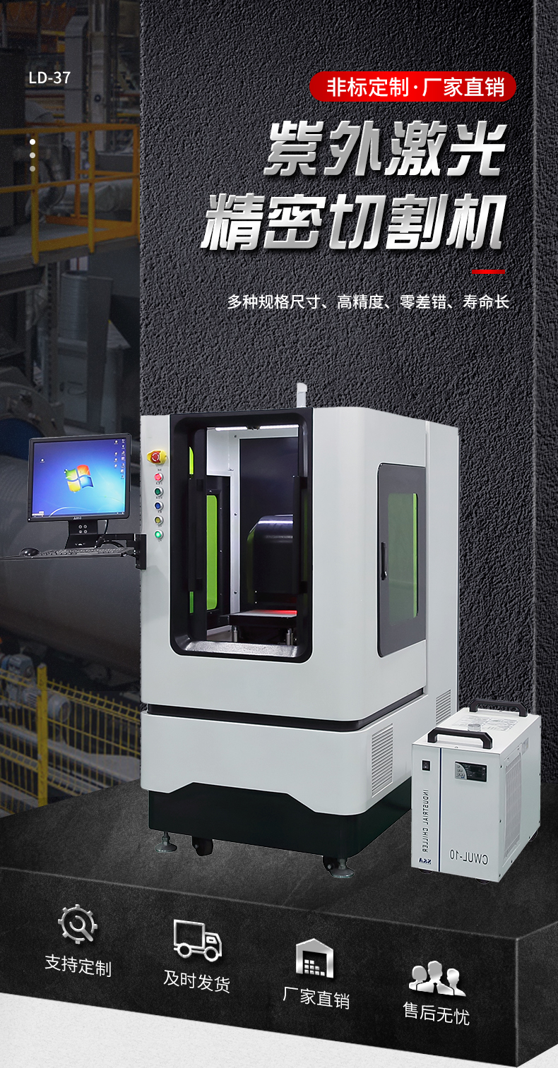 采用UV紫外激光作為工具,加工方式結構緊湊、易安裝操作簡單維護方便。幾乎可以加工所有材料功能強大,精密控制及加工效率極高,開發創新產品的好幫手。
