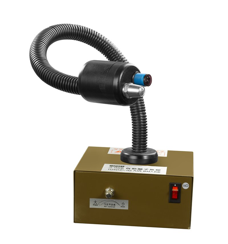 智能離子風(fēng)蛇是一種坐立式靜電消除器,可手動(dòng)將蛇管變成風(fēng)蛇指向目標(biāo)方向,讓離子氣流離子風(fēng)蛇可產(chǎn)生大量帶有正負(fù)電荷的氣團(tuán),被壓縮空氣高速吹出,可以將物體所帶的電荷中和掉,當(dāng)物體表面帶有正電荷時(shí),它會(huì)吸入氣流中的負(fù)電荷,反之亦然。從而使物體表面的靜電被中和,從而消除靜電/高速壓縮氣還可以將物體上靜電吸引的灰塵吹走。