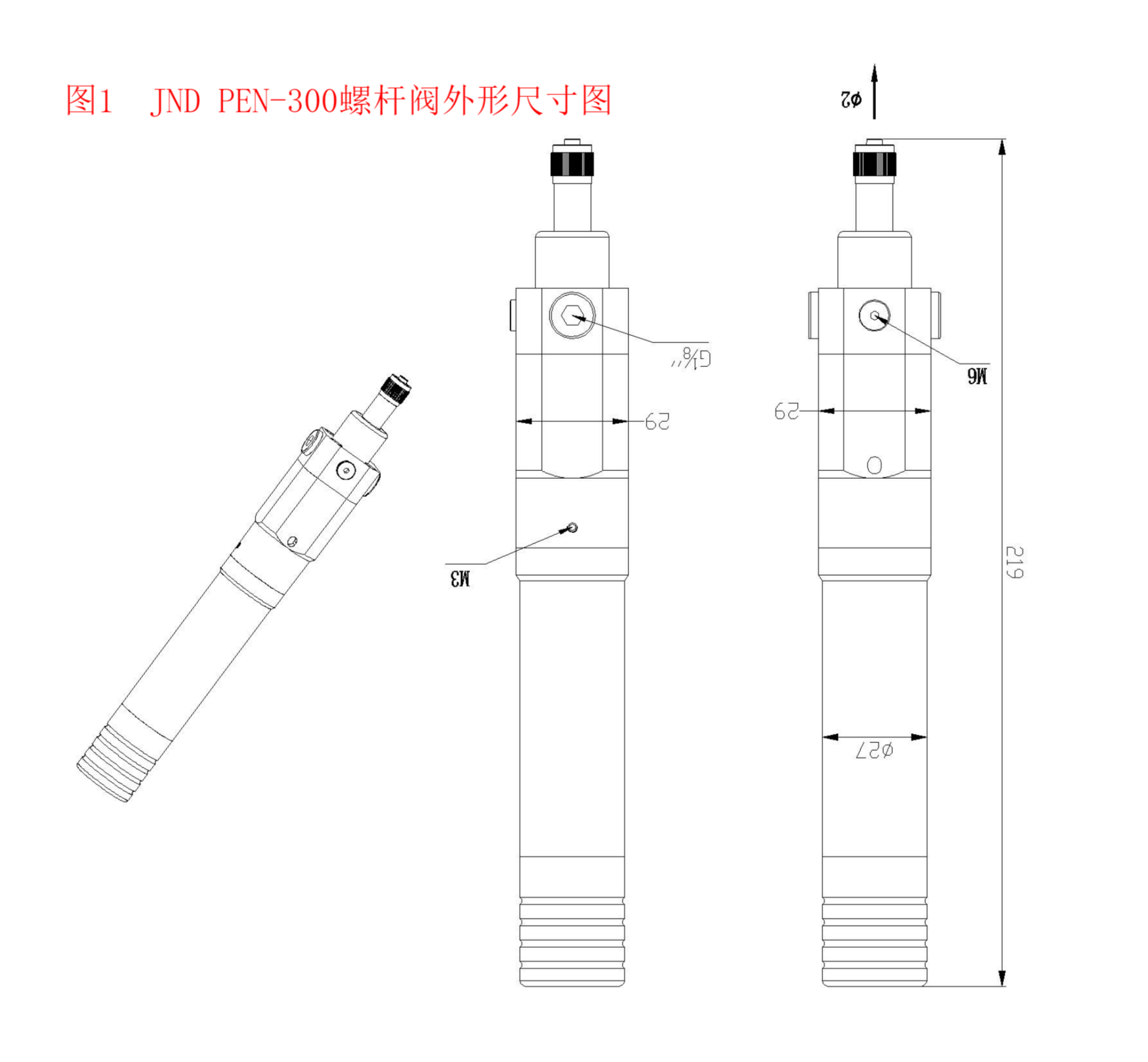 設(shè)備本體尺寸:①螺桿閥: 219(L)mm×29 (φ)mm(具體尺寸見(jiàn)圖1)